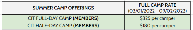 Are you ready to become a Counselor in Training (CIT) and learn the responsibilities of a camp counselor? If so, spend your summer with us assisting our staff with the daily operations of camp! You can make friends with other CITs, earn community service hours, train to be a camp counselor, and have fun. This program is for rising 7th, 8th, and 9th graders.
