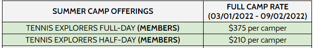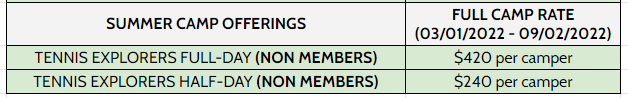 TENNIS EXPLORERS SUMMER CAMP