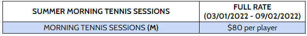 Morning Tennis Session Weeks: