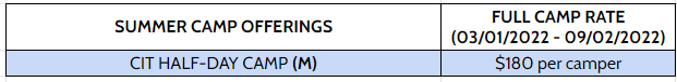 COUNSELOR IN TRAINING (CIT) CAMP (Ages 13-15)
